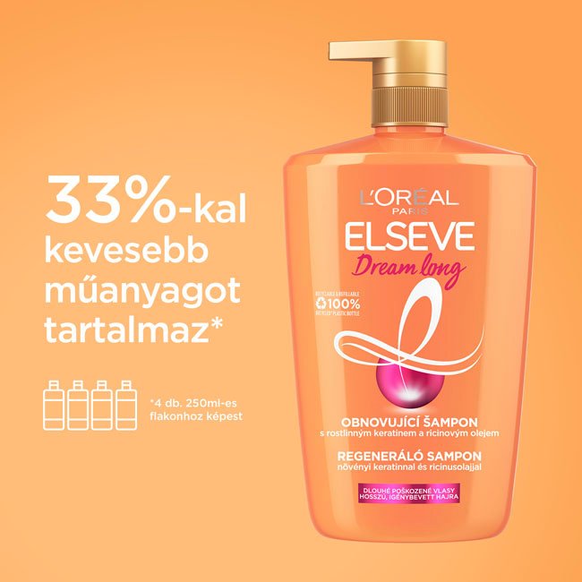 Gyönyörű, hosszú hajat szeretne, de ezt nem könnyű megvalósítani? A haja rengeteg hatásnak van kitéve, a hajhossz megviselt lesz, a hajvégek töredezetté válnak, és le kell őket vágni. Ismerje meg a titkunkat, mely segít elérni a hosszú hajat, amelyről álmodott! Krémes állagú, ápoló samponunk segít búcsút inteni a megviselt hajvégeknek. Összetételünk egy hatékony koktélra épül: - növényi keratinnal, mely beépül a hajába - vitaminokkal, melyek rendszeres használat mellett* erősebbé varázsolják a haját - ricinusolajjal, mely táplál, fényesít és segít megőrizni a haj hosszúságát. *Műszeres teszt többszöri alkalmazás után. MENTSE MEG AZ UTOLSÓ 3 CM-T*