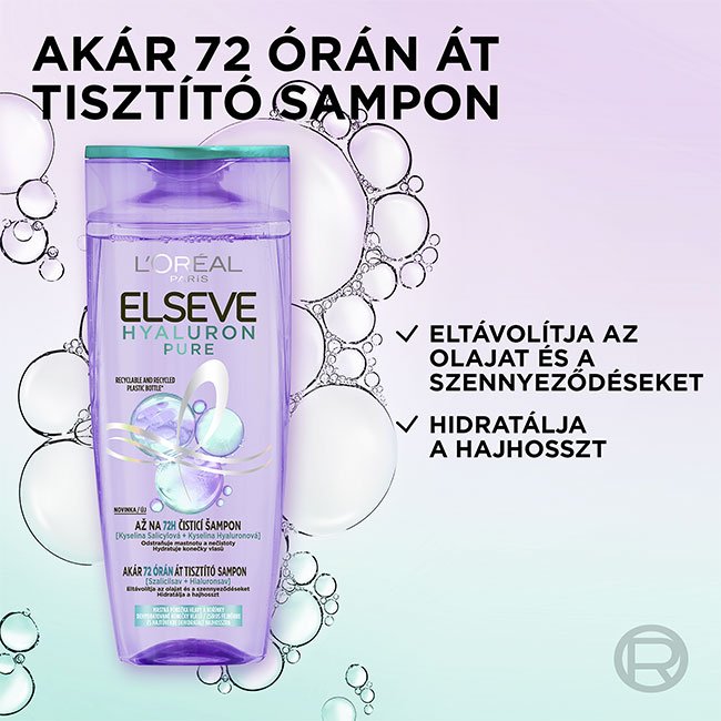Zsíros hajtövek és dehidratált hajhossz? Szalicilsavat és hialuronsavat tartalmazó hidratáló és tisztító samponunk elnehezítés nélkül távolítja el a szennyeződéseket a fejbőrről, és akár 72 órán át hidratál – a tiszta hajvégekért és a hidratált hajhosszért. (1) (1) Fogyasztói teszt 59 használó szerint, 72 órával a termékcsaládba tartozó szérum + sampon + balzsam használata után.