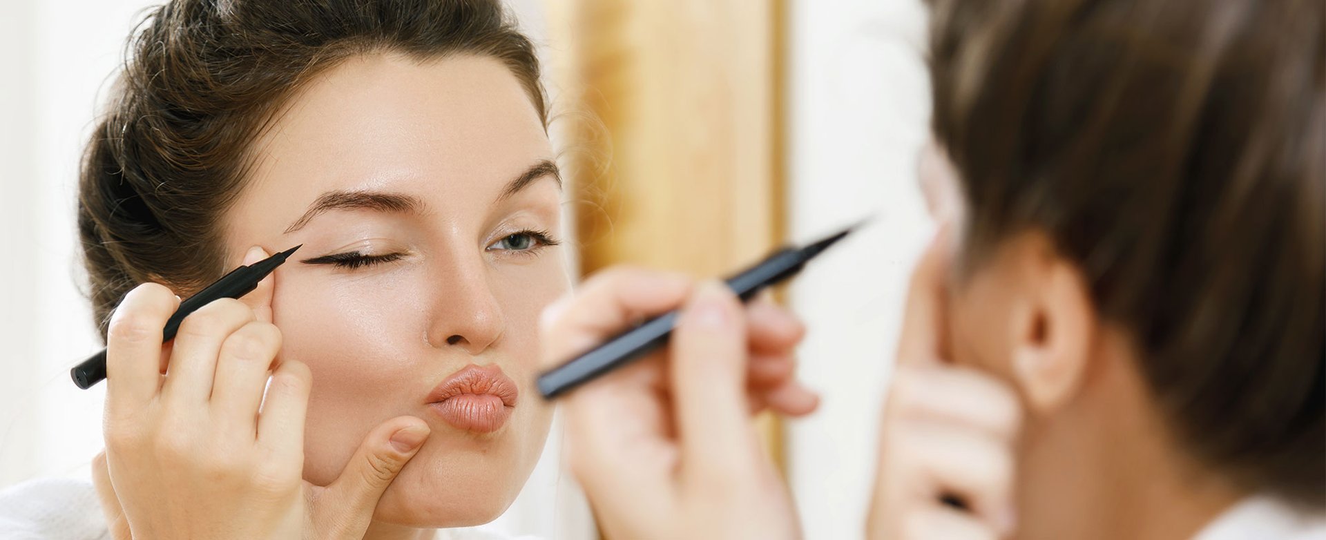 A kissé megereszkedett vagy lejjebb húzódó szemhéj könnyen „elrejtheti” a tusvonalat, ha nem megfelelő helyre kerül. A legjobb, ha úgy rajzolja meg, hogy közben egyenesen a tükörbe néz. Ne lehajtott szemhéjjal csinálja.