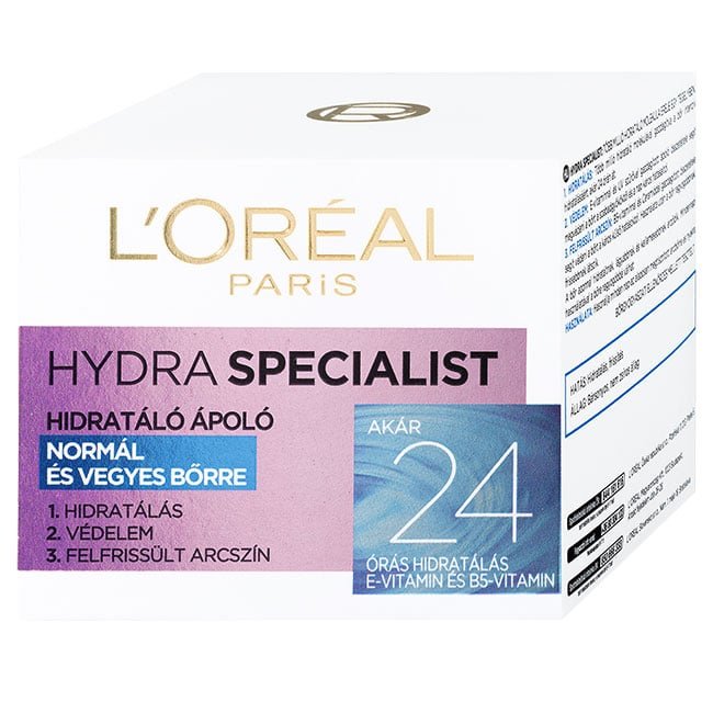 Hydra Specialist: több millió hidratáló molekula ereje egy tégelyben. 1. Hidratálás: Több millió hidratáló molekulával gazdagítva a bőr intenzív hidratálásáért, akár 24 órán át. 2. Védelem: E-vitaminnal és UV-szűrővel gazdagított ápoló összetétele segít megvédeni a bőrt a szabadgyököktől és a Nap káros hatásaitól. 3. Felfrissült arcszín: B5-vitaminnal és Ceramiddal gazdagított összetétele segít védeni a bőrt a káros külső hatásoktól. Használata után a bőr ragyogóbbnak, frissebbnek látszik.