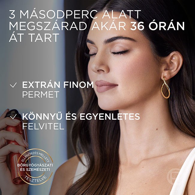 A L'Oréal Paris első fixáló permete, amely akár 3 másodperc alatt lefixálja a sminkjét elmozdulás nélkül.