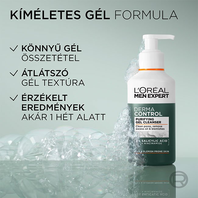 A niacinamiddal és szalicilsavval gazdagított Derma Control arctisztító gél tökéletes kiegészítője rutinjának a pórusok tisztításáért, a többlet olaj eltávolításáért és a bőrhibák csökkentéséért. A könnyű, átlátszó, gél textúra látható eredményeket nyújt a zsíros, aknéra hajlamos bőr bőrhibáinak csökkentésében. Érzékeny bőrre is megfelelő. Tisztítja a pórusokat, eltávolítja a többlet olajat és a bőrhibákat.