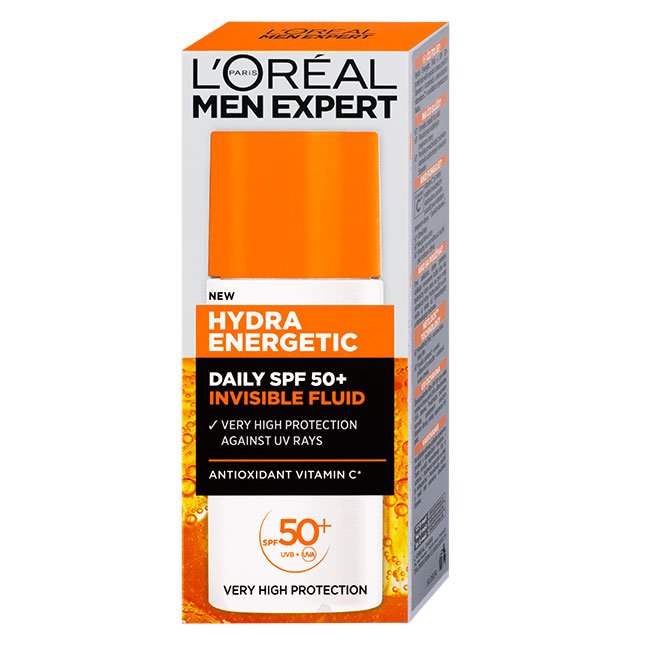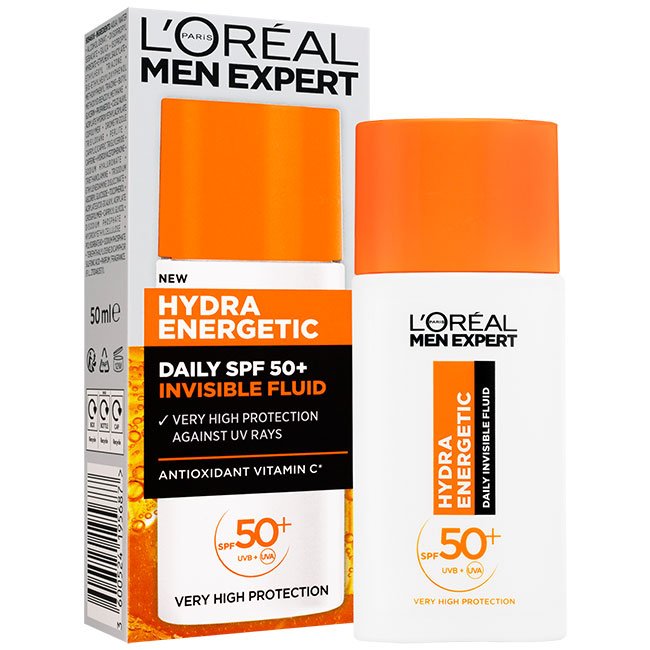Láthatatlan Hydra energetic fluid SPF 50+ fényvédővel férfiaknak. Segít szépíteni a bőrtónust. Küzd a fáradtság látható jelei ellen. Segít megelőzni a napsugárzás által okozott bőröregedés jeleit.