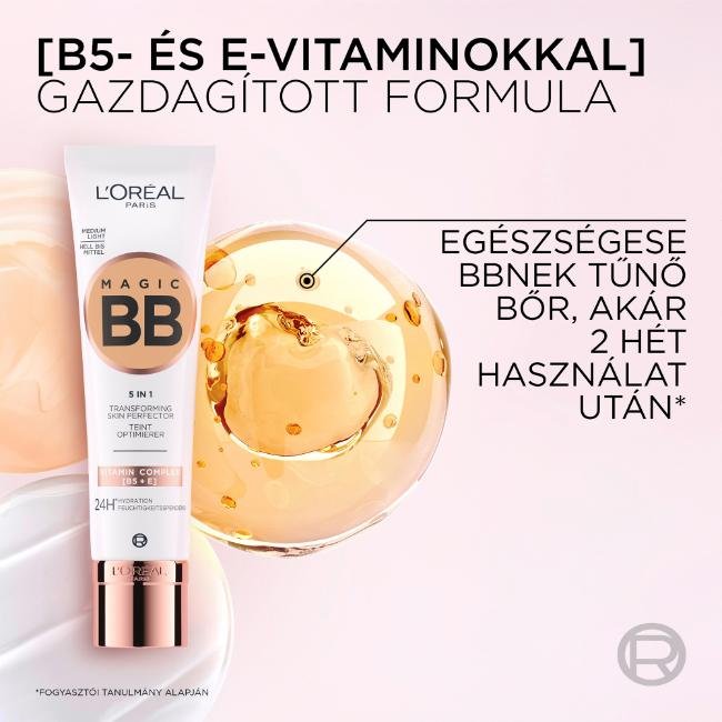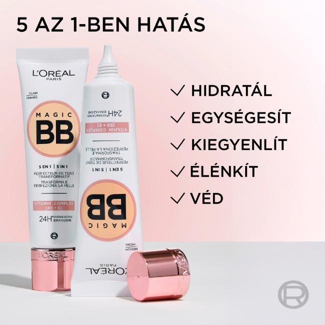 A bőrápolás és smink mágikus kombinációja a bőr gyönyörű fedéséért és egységesítéséért. A könnyed állagú Magic BB-krém ragyogó hatást kölcsönöz a bőrnek elnehezítés nélkül. Tökéletesen alkalmazkodik a bőrtónushoz és sima, egyenletes fedést nyújt. A BB-krém a bőrre kenve átalakul fedést nyújtó alapozóvá. Összetétele B5-vitaminokkal gazdagított az akár egész napos hidratáltságért, valamint E-vitamint tartalmaz, amely antioxidánsként funkcionál és védi a bőrt a külső hatásoktól.