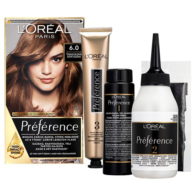 L'Oréal Paris Préférence a Fade-Defying SYSTEMTM erejével. A hosszantartó hajfestékek magas koncentrációja az új olaj-gél textúrával kombinálva akár 8 hétig tartó kopásgátló színt és erős ragyogást* biztosít. Akár 100% őszhajfedés. A dobozban megtalálható továbbá az UV-szűrővel és E-vitaminnal gazdagított színvédő hajápoló is. *Műszeres teszt