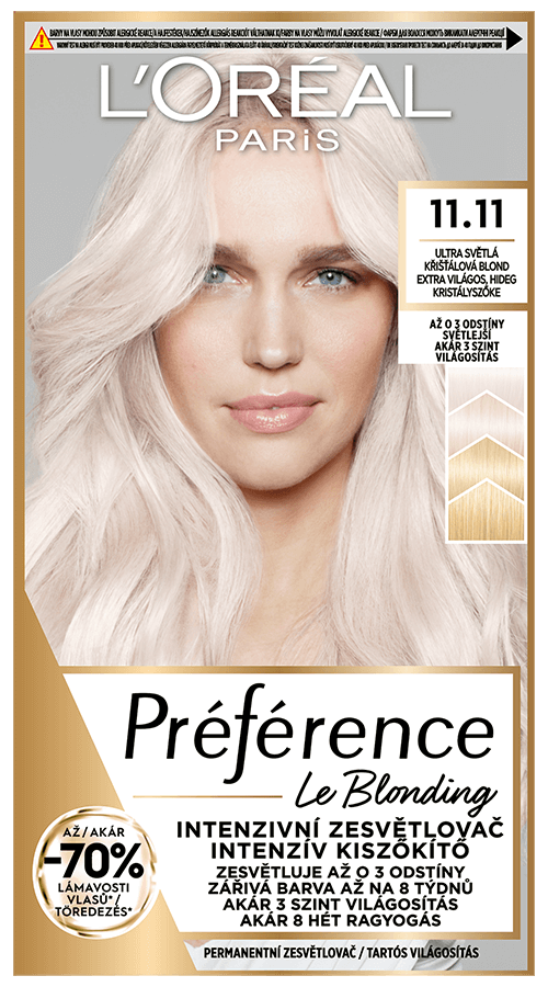 A Préférence kiszőkítő akár 3 szinttel világosítja a hajat. UV-szűrővel és E-vitaminnal gazdagítva intenzíven táplálja a hajat, csökkenti a töredezést és megőrzi a festett haj fényességét akár 8 hétig.* *Műszeres teszt