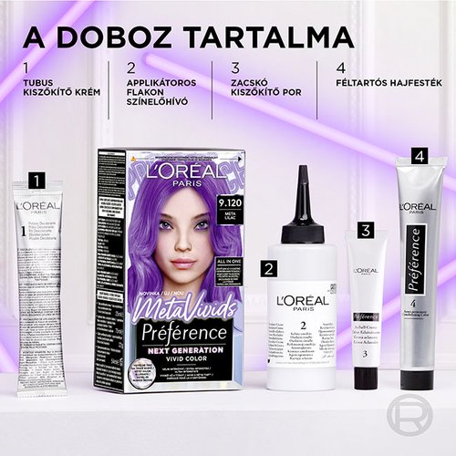 Az ÚJ "ALL IN ONE" szett egy csomagban tartalmazza a Préférence legjobb kiszőkítőjét és egy féltartós hajfestéket. Ennek a kombinációnak köszönhetően a Meta Vivid színek sötét hajra is használhatóak.