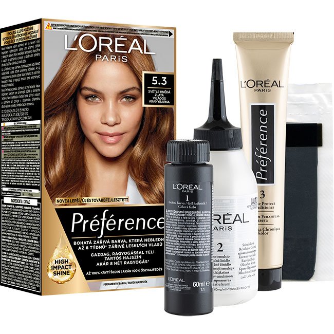 L'Oréal Paris Préférence a Fade-Defying SYSTEMTM erejével. A hosszantartó hajfestékek magas koncentrációja az új olaj-gél textúrával kombinálva akár 8 hétig tartó kopásgátló színt és erős ragyogást* biztosít. Akár 100% őszhajfedés. A dobozban megtalálható továbbá az UV-szűrővel és E-vitaminnal gazdagított színvédő hajápoló is. *Műszeres teszt