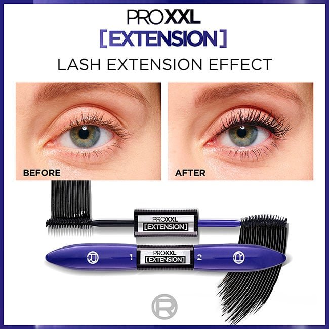A szalonszolgáltatások által ihletett L'Oréal Paris PRO XXL Extension szempillaspirál, a meghosszabbított szempillákért.