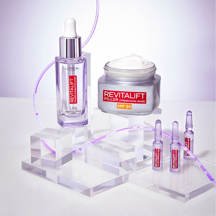 A bőrben természetesen előforduló hialuronsav (HA) egy makromolekula, amely képes a saját súlyának, akár 1000-szeresét is megtartani vízből, ami miatt az epidermisz legfőbb hidratáló szere. Láthatatlan filmréteget képez a bőrön, ami a nedvességvesztést is megakadályozza. A biotechnológia lehetővé teszi kisebb méretű, kisebb molekulasúlyú hialuronsav molekulák készítését, amelyek képesek behatolni az epidermiszbe a nedvesség visszaállításáért. A hialuronsav a Revitalift Filler, Hydra Genius, Elseve Hyaluron Plump és TrueMatch Színezett szérum egyik fő összetevője.